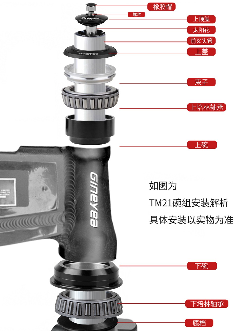 GINEYEA電摩車(chē)頭碗組越野摩托車(chē)錐管44-55mm滾針培林前叉軸承底座