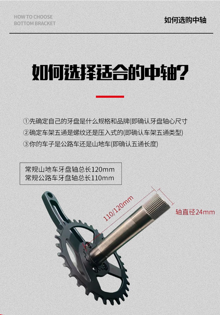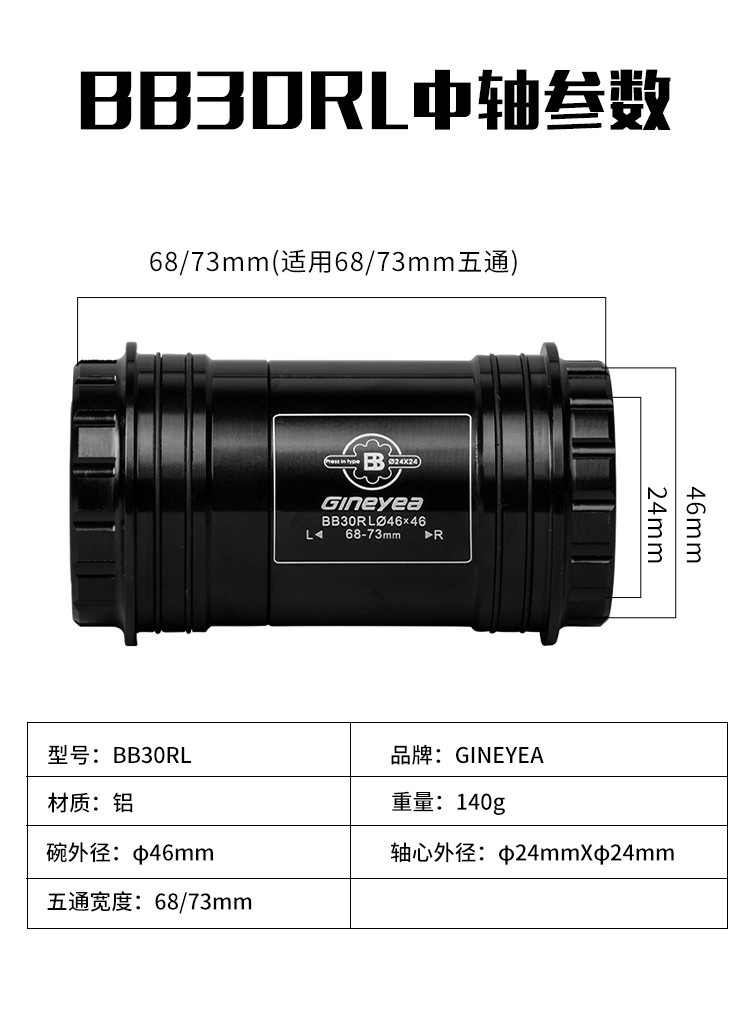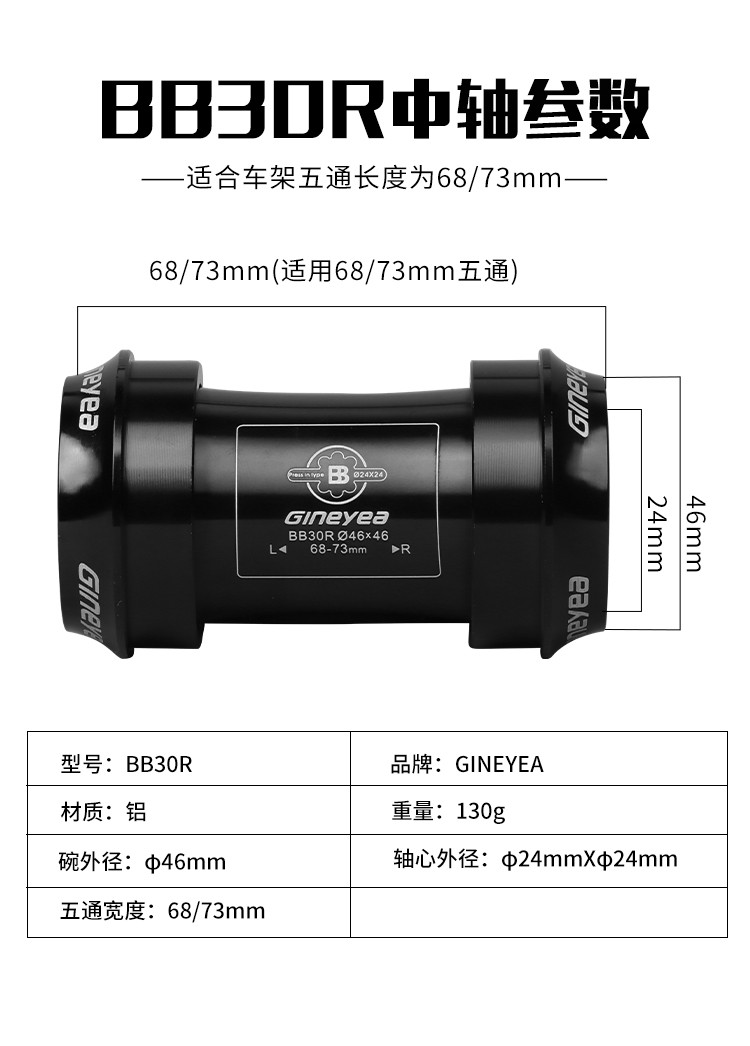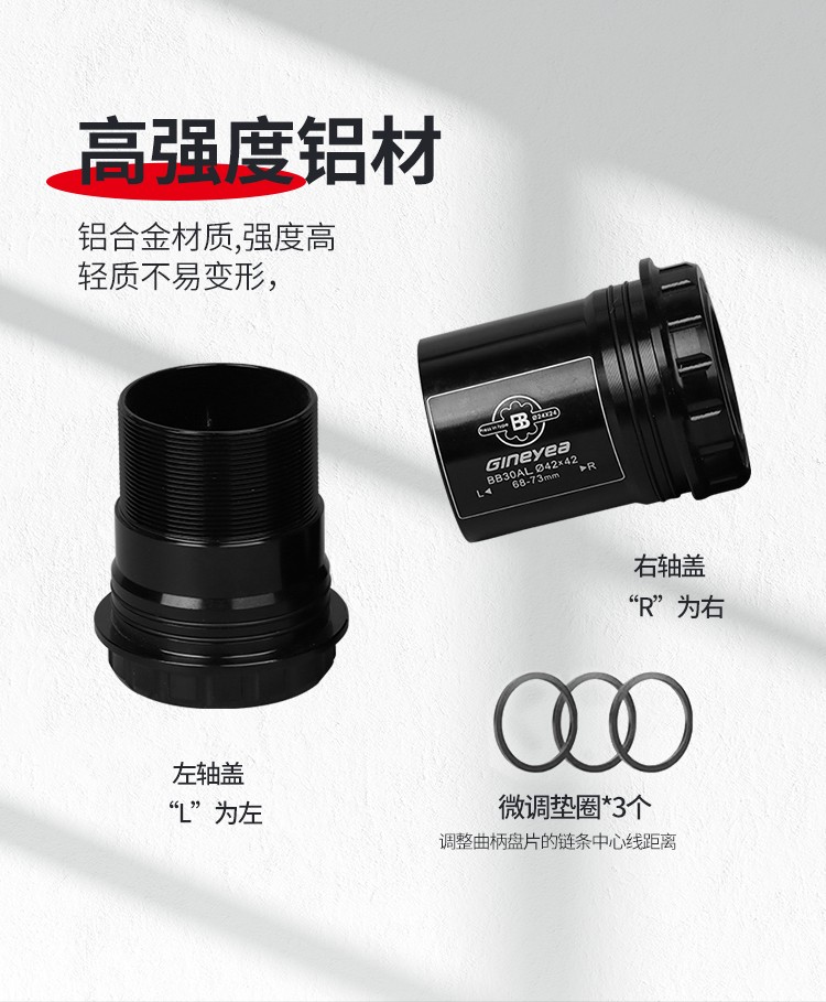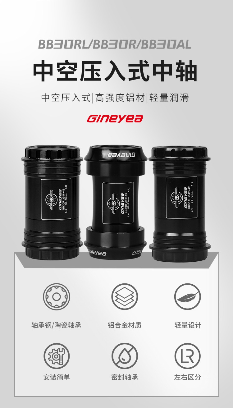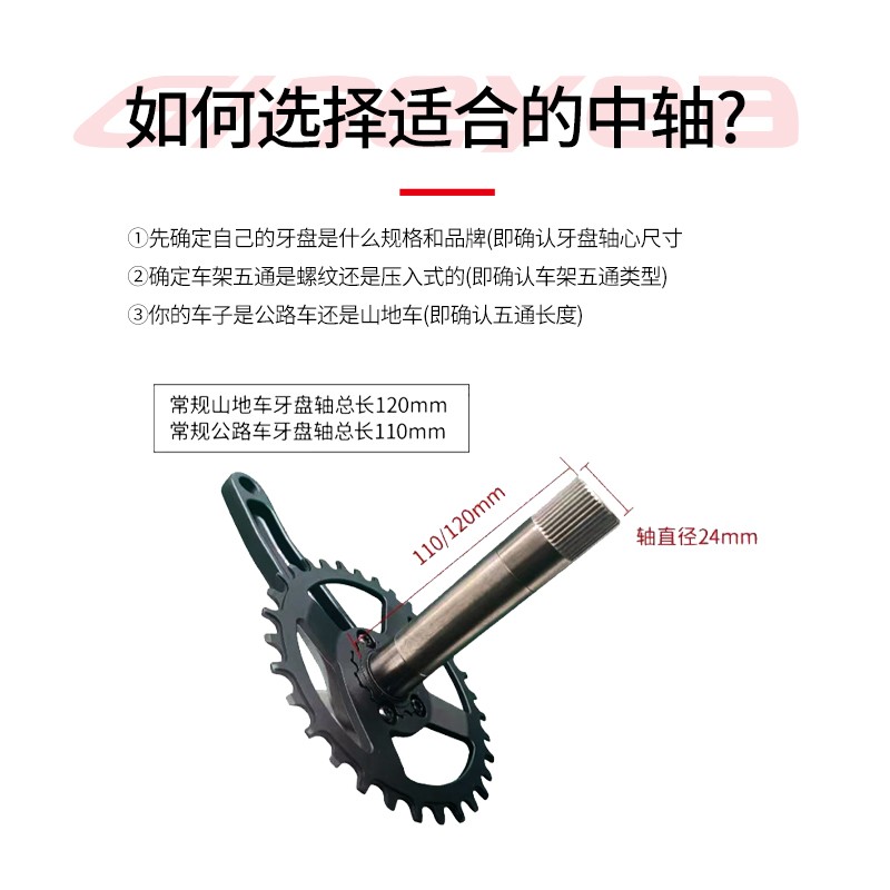 景曄山地自行車培林對(duì)鎖中軸中空一體牙盤BB中軸壓入式螺紋中軸