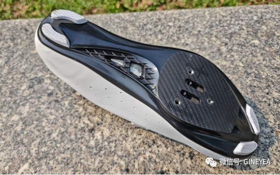 鞋頭防撞包邊,鞋面表現的也相當耐折。公路入門款同樣使用尼龍+TPU材質鞋底,鞋底中央布置了透氣孔,硬度達到13,鎖片安裝位使用雙孔位設計,可同時兼容山地和公路鎖片,充分滿足日常騎行所需。自帶的鞋墊柔軟透氣,鞋楦造型考究,整體包裹性強,值得推薦!