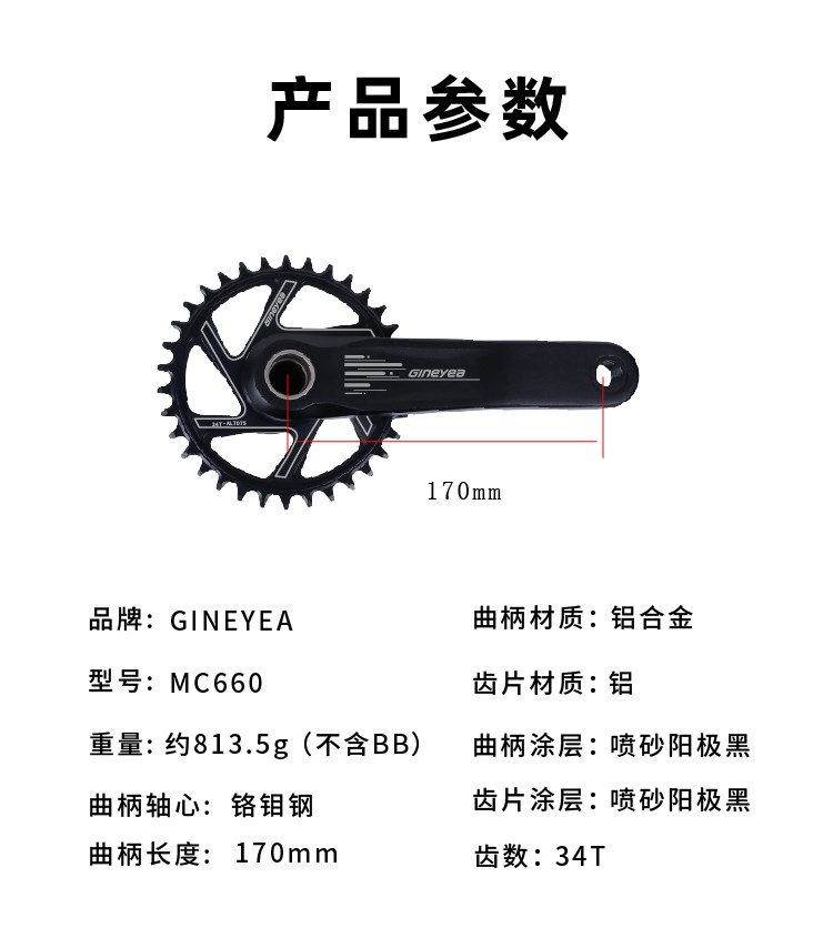 景曄軟尾自行車曲柄組CNC輕量化牙盤28T中空一體170曲柄24軸