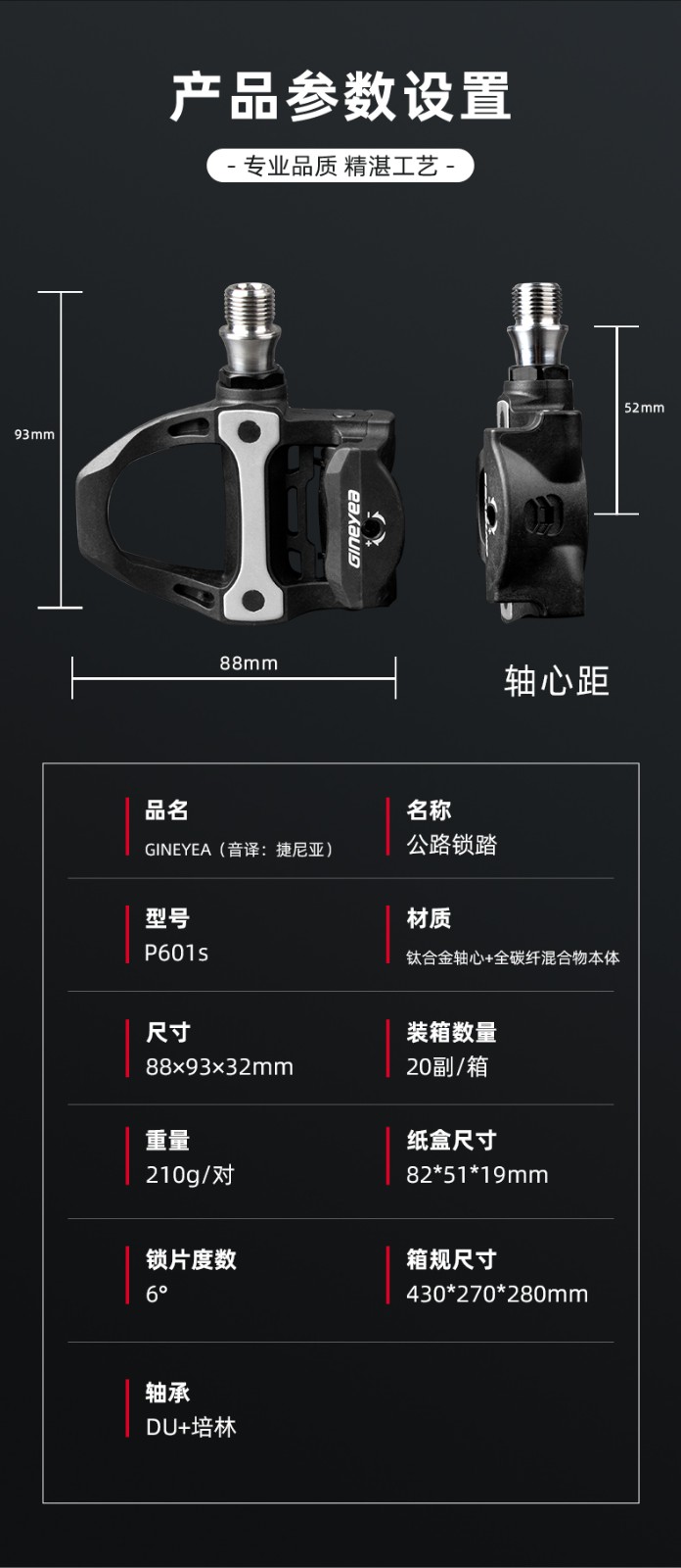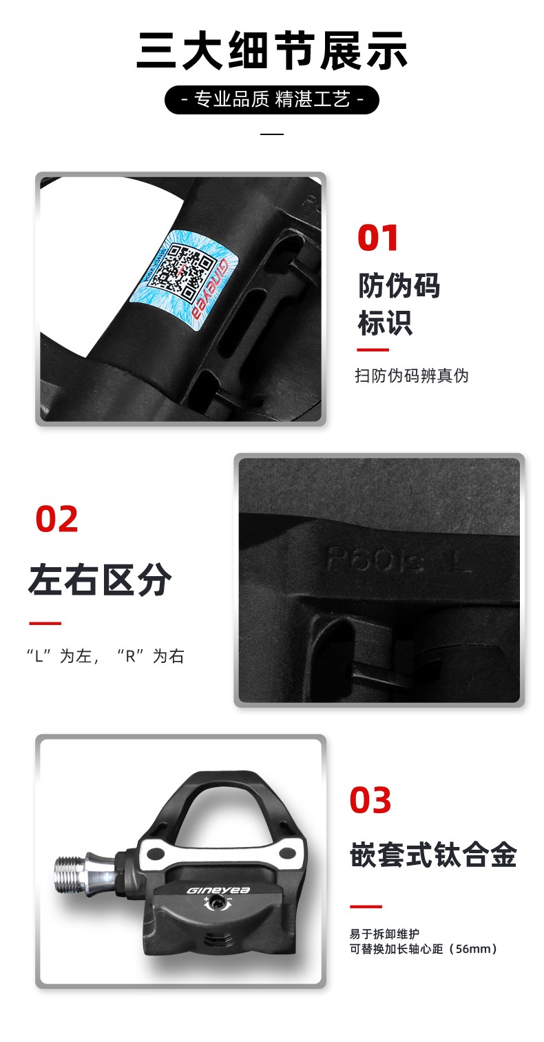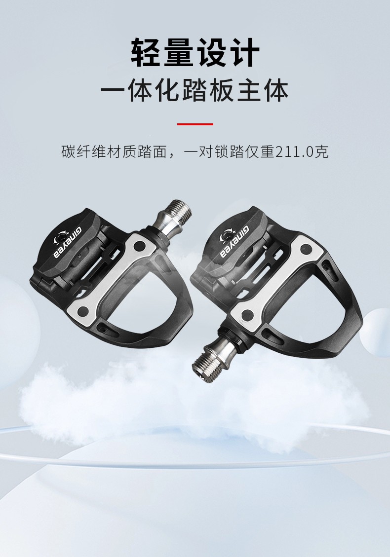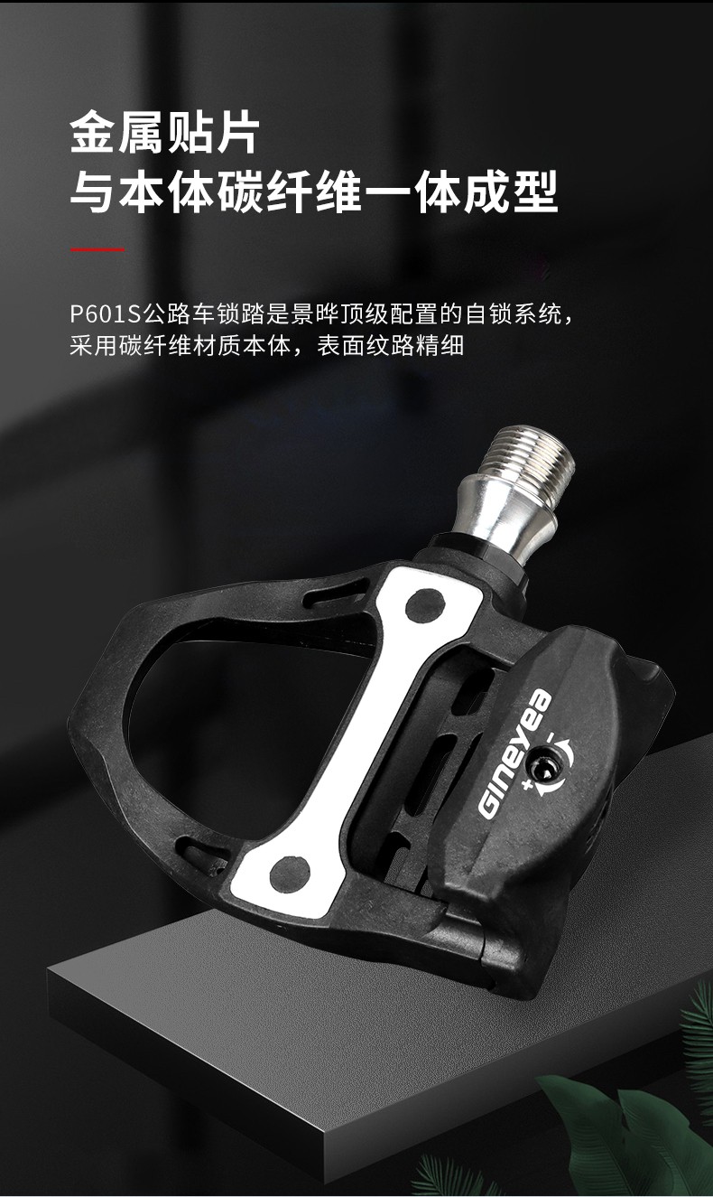 景曄新款P601S公路車自鎖腳踏炭纖維公路鎖踏 鈦合金軸心騎行踏板211克