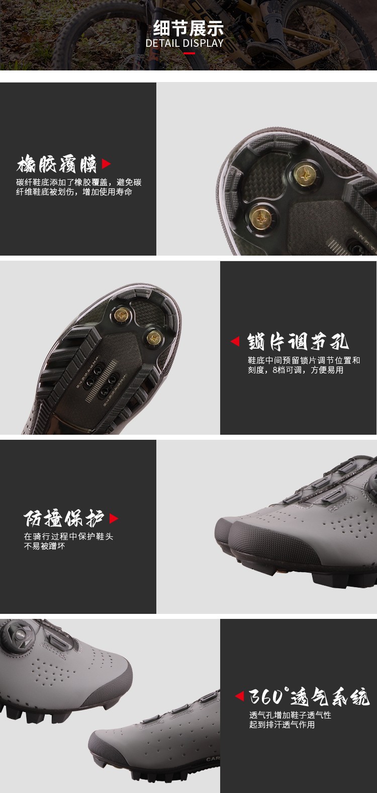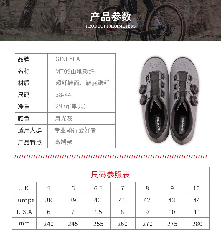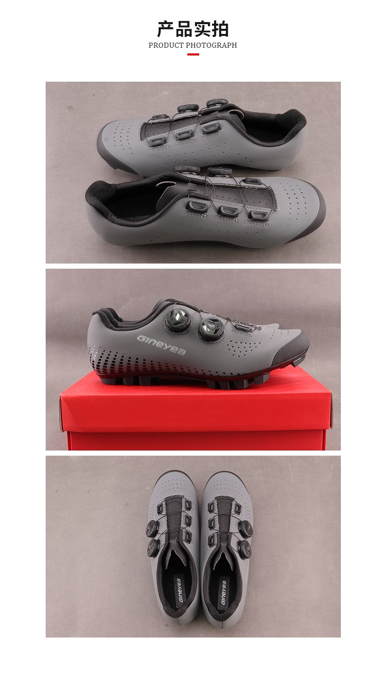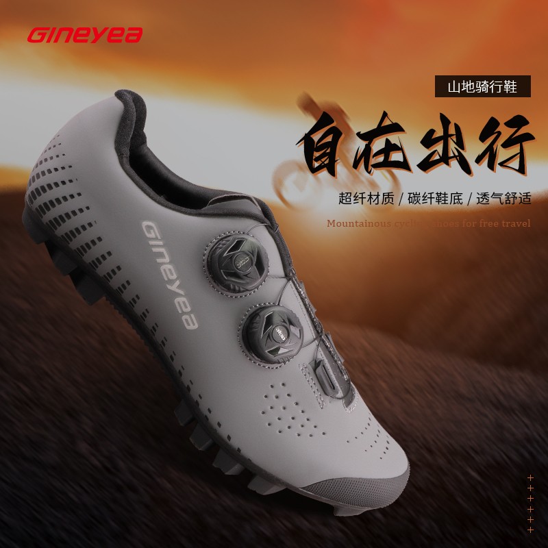 Gineyea新款透氣炭纖維山地車鎖鞋無鎖騎行鞋山地自行車男女鎖鞋